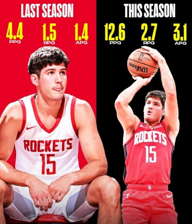 而奥科吉在首发阵容当中,虽然数据一般,不过他的作用极大。他不占球权,可以帮助阿门·汤普森去防守对方的箭头人物;在进攻端,他也可以为申京和杜兰特拉开更多的空间。一旦火箭队的申京和杜兰特遭遇对方的严密包夹,他们马上可以将球传给奥科吉,因为奥科吉本赛季是火箭队最好的三分射手之一,他的三分投篮能力不在谢泼德之下,让他出任首发也是一个非常合理的选择。