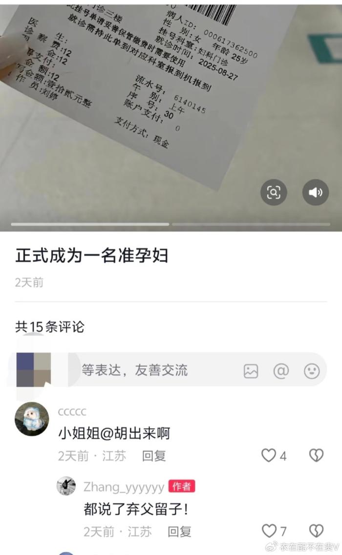 然而,一名25岁的张姓女子在网上爆料,自己怀上了胡颢瑀的孩子,还晒出自己的实名以及孕检报告,作为证据。